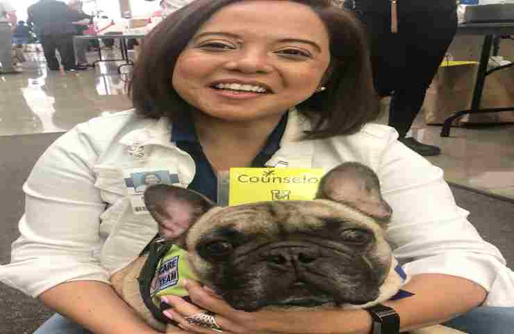 Steve, un residente della cittadina, con le lacrime agli occhi teneva in braccio e coccolava Hazel, per almeno venti minuti non l’a fatta allontanare. Alla fine l’uomo ha dichiarato quanto la cagnolina fosse stata una benedizione. Hazel è una professionista, ha ricevuto tutto l’addestramento necessario, lavorando per quattro anni al Children’s Breavement Center del Texas, quando torna a casa, fuori servizio è una cagnolina golosa di dolci ed esuberante, ama la musica e i suoi padroni, che vivono con lei e altri due bulldog.