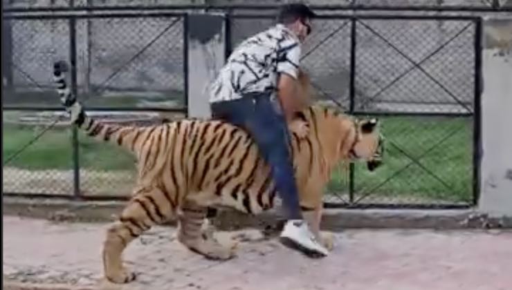 “Prova a farlo nella natura” i commenti rivolti alla clip dell’influencer aumentano ogni ora: l’uomo che cavalca la tigre è accusato di maltrattamento.