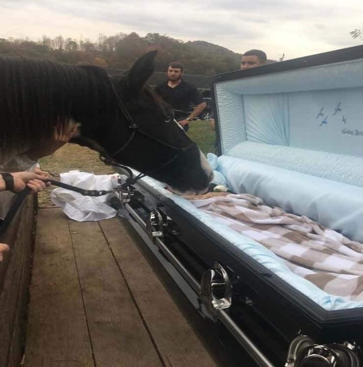 Il cavallo da l’ultimo bacio all’uomo che lo ha salvato e insegnato ad amare. Al funerale il suo gesto ha commosso i presenti