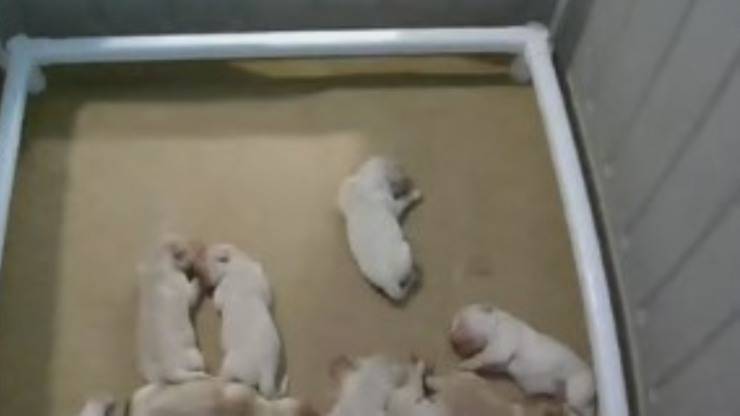 Per aiutare Leia, il suo proprietario sposta i cuccioli sul lato destro del recinto, permettendole di sdraiarsi e nutrire i suoi piccoli.