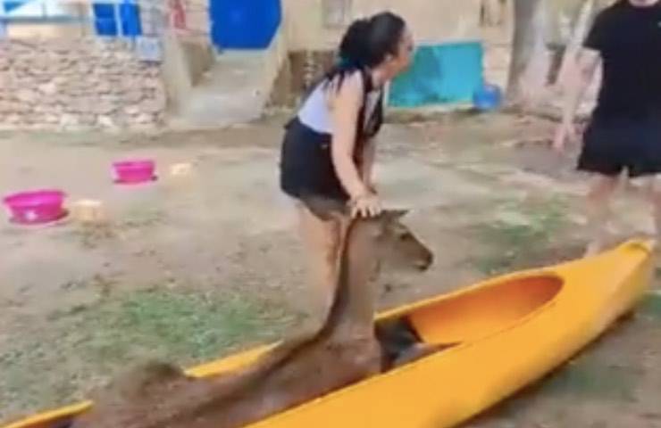 L’incredibile e simpatica clip – pubblicata dal profilo di @ruideratreasure – ha totalizzato finora più di 37mila visualizzazioni sfiorando un numero complessivo di 500 like. Le immagini della cerva a bordo della canoa provengono, con maggior precisione, dal sito naturale situato tra le province spagnole di Albacete e di Ciudad Real. La disavventura avrebbe messo a dura prova la salute della cerva, che è apparsa – agli occhi dei presenti – come priva di senso dell’equilibrio e del normale istinto di sopravvivenza. L’assistenza per animali selvatici starebbe facendo tutto il possibile per favorire la sua riabilitazione ed evitare che si debba ricorrere all’eutanasia.