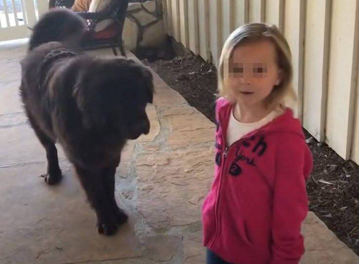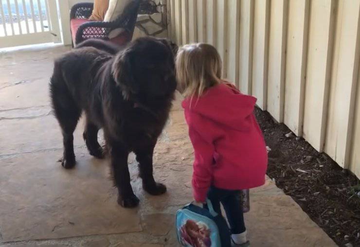 La piccola, di nome Sierra, è pronta sull’uscio della porta con il suo zainetto e girovaga in attesa che la mamma le dica di uscire per andare via. Il cane le gironzola attorno come se fosse in attesa di qualcosa. La donna allora invita la figlia a salutare il cane prima di andare a scuola e lei non se lo fa ripetere due volte. La bambina si gira verso il suo amico peloso e inizia a dargli degli affettuosissimi bacetti sul naso.