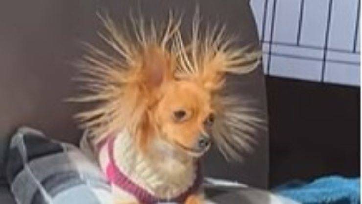Tra le razze più simpatiche già per il loro aspetto piccolo e spesso buffo, questa volta un cane chihuahua ha superato ogni aspettativa. Il video che lo riprende con i peli dritti è ovviamente diventato virale in men che non si dica. Migliaia e migliaia di visualizzazioni registrate dalla clip che dura pochissimi secondi. Il proprietario del simpatico cucciolo infatti, non è riuscito a filmare oltre poiché non riusciva più a contenere le risate. Il cagnolino è apparso all’improvviso con un’acconciatura nuova di zecca che, di certo, non sarebbe mai potuta passare inosservata. Quando il suo amico umano si è accorto del risultato, ha subito filmato la scena e condiviso tutto sui social: l’immagine così divertente del suo cagnolino non poteva rimanere tra le quattro mura di casa. L’uomo non riesce a smettere di ridere ma l’espressione del cucciolo è ancora più buffa.