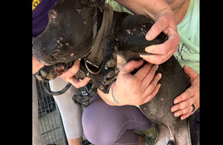 Oltre 20 cani di razza pitbull e di razza mista erano incatenati sparsi tra il cortile e i boschi dietro la proprietà, ma se inizialmente si pensasse che qui poveri animali fossero solo vittime di negligenza un analisi più attenta ha rivelato l’agghiacciante verità, le cicatrici disseminate sui loro corpi raccontavano storie di violenza e sofferenza e ogni segno e ogni ferita era evidentemente inflitta da un loro simile e non dall’essere umano, questo ha fatto capire agli agenti che non si trattava di cani vittime di maltrattamento ma di poveri animali costretti ad esibirsi nel combattimento.