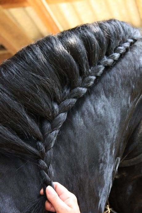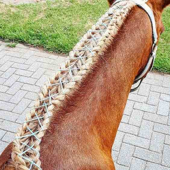 Si tratta di un altro tipo di treccia che si snoda lungo il collo del cavallo. Attraverso lo stesso principio d’intreccio, suddividendo il primo ciuffo in tre, si procede con l’aggiungere ogni volta una ciocca ad un ciuffo mano a mano che si scende verso la parte bassa del collo.
