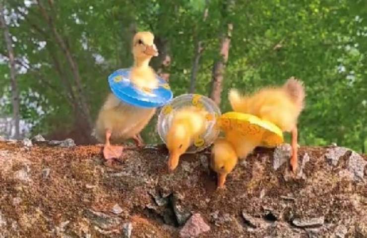 Il video si apre mostrando il fermento e la voglia di arrivare il prima possibile allo specchio d’acqua per una bella rinfrescata. Il coniglietto sta praticamente correndo, come a voler scappare dagli anatroccoli più che guidarli. Tuttavia i piccoli non vedono l’ora di fare un bel tuffo e seguono la loro guida fino allo stagno. A rendere la scena ancora più incredibile ed esilarante è il fatto che i piccoli anatroccoli, oltre a non vedere l’ora di arrivare, è il fatto che al loro collo hanno dei mini salvagenti colorati.