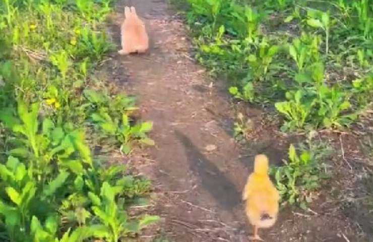 È il caso di un coniglietto e degli anatroccoli divenuti virali in un video pubblicato su TikTok da @tianyuanmengchong, account dedicato ad un tenero coniglio dove lo si vede interagire con tantissimi animali. Proprio tra queste clip, gli utenti sono rimasti incantati da una in particolare, la quale mostra il coniglietto fare a guida verso lo stagno per permettere agli anatroccoli di andare a nuotare.