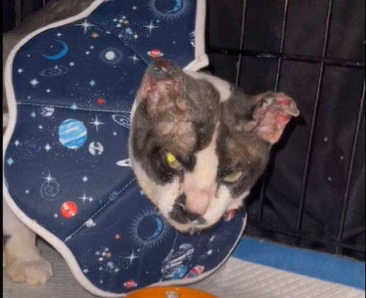 Hanno cercato di dargli fuoco: salvato dall’incendio, il gatto lotta per la vita