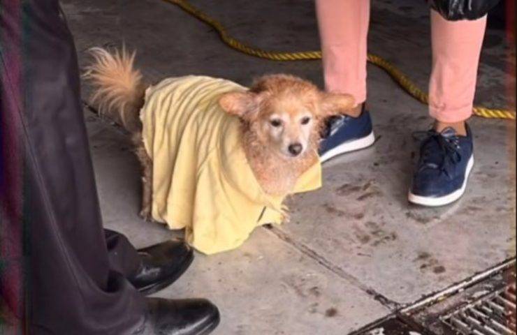 Con la furia di chi sa che sta per vedere la situazione degenerare l’uomo legato solo con una corda per non farsi trascinare dalla corrente si è scagliato contro il finestrino posteriore dell’abitacolo e dopo svariati colpi è riuscito a rompere il vetro portando per primo in salvo il piccolo cagnolino.
