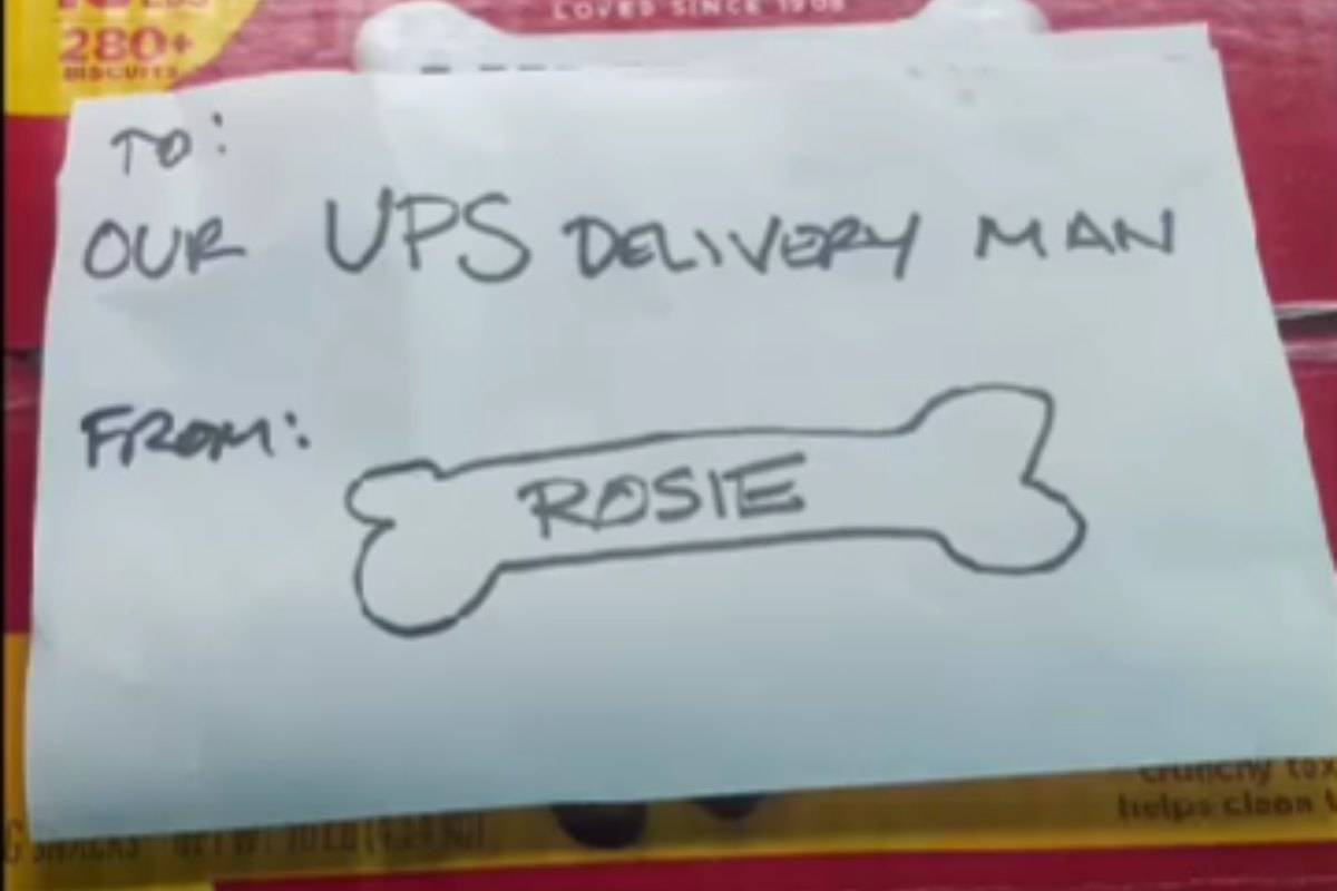 Ogni corriere si imbatte ogni giorno in molti animali domestici e durante il suo solito tragitto, John ha imparato a conoscere i suoi quattro zampe e per questo con sé porta sempre un biscotto per ognuno di loro. Tuttavia, una mattina è stato accolto da un pacco di croccantini per cani accompagnato da un biglietto lasciato da un cliente abituale. Nel biglietto c’era scritto: “Grazie per tutti gli anni di consegne con croccantino per il nostra cucciola Rosie. Sapeva che avrebbe ricevuto un dolcetto ogni volta che saresti venuto. Purtroppo Rosie, che aveva 10 anni, ha dovuto essere soppressa a causa del cancro. Ti prego di accettare questo regalo e di continuare a rendere felici i cani facendo quello che hai fatto fino ad ora“.