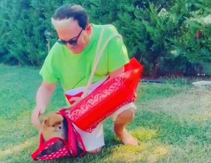 Il video ritrae infatti Cristiano che all’interno di un trasportino tiene Daddy un volpino di pomerania molto carino. Appena Malgioglio apre il trasportino per presentare il cucciolo scappa fuori correndo nel prato.