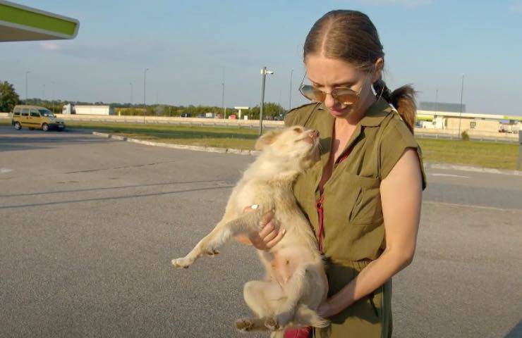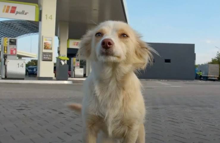 Cucciola vive di stenti in una stazione di servizio, finché si avvicina a una donna – VIDEO