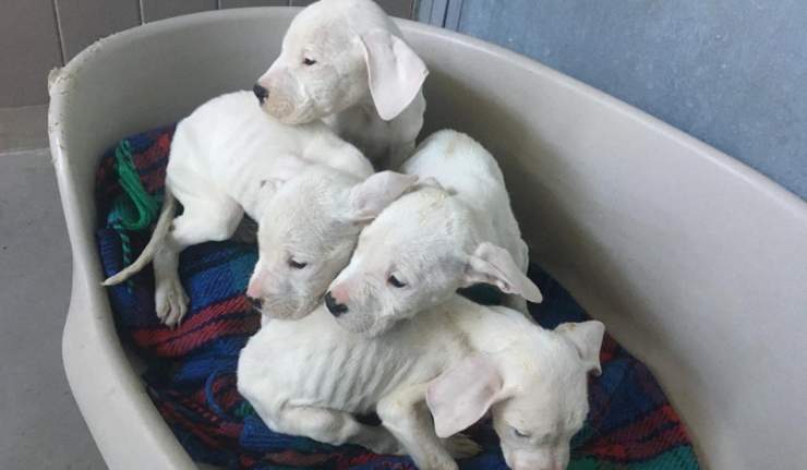 I piccoli sono stati ritrovati in condizioni di estrema denutrizione. Al riguardo, i membri del personale medico hanno espresso la loro preoccupazione: “I cani hanno solo due mesi e mezzo ma ne dimostrano solo uno. Abbiamo pensato che siano stati alimentati con il latte della madre senza nessun tipo di integrazione alimentare anche se dovevano essere svezzati già da un pò di tempo. Ora mangiano e bevono con appetito.” Al momento, il recupero del peso si rivela fondamentale per poi essere sottoposti alle vaccinazioni. Una volta terminato tale periodo, i cuccioli potranno essere messi in adozione, pronti per una nuova famiglia.