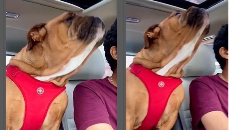 Diventa virale il video di un cane Bulldog ripreso mentre ulula sulle note della sua canzone preferita durante il viaggio in auto: il cucciolo ha un vero talento per la musica.