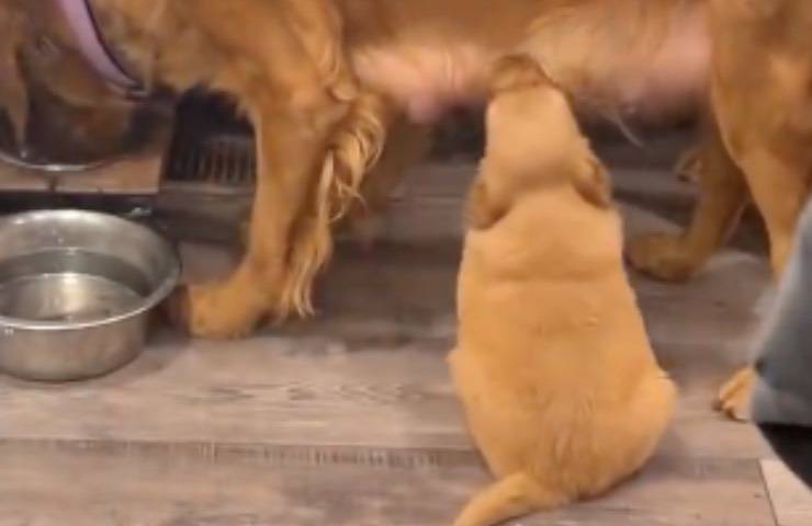 Una mamma di Golden Retriever, Lady, è alle prese con il suo pasto quotidiano, quando – nel momento dedito al ristoro anche per i suoi cuccioli, uno di essi – Loki Jr., sceglie di intraprendere l’azione più semplice del mondo, ma in modo molto particolare. Questo modo verrà poi descritto dagli utenti in rete: come di “irresistibile” dolcezza. L’iniziale allegria del pelosetto, grazie alla sua buffa improvvisazione, diventa ancor più contagiosa.