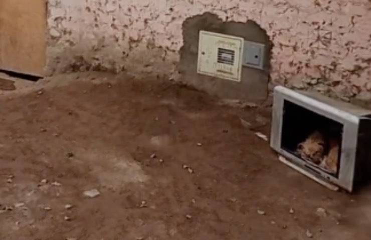 Un cucciolo di cane vive al riparo nella TV abbandonata: la toccante clip diventa virale