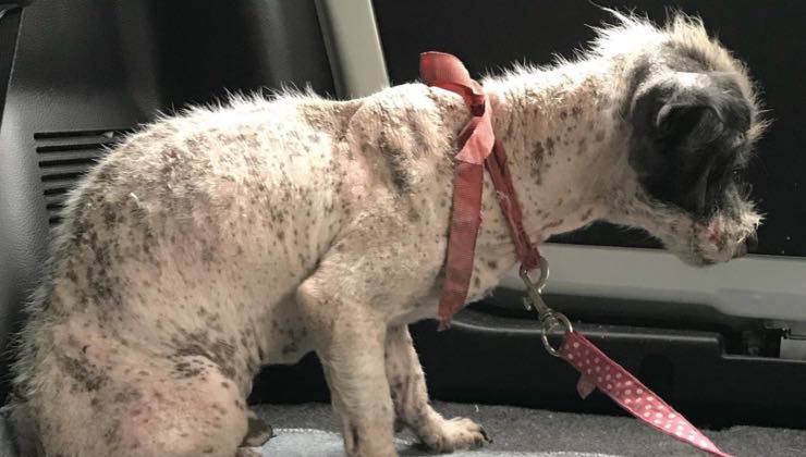 Se è vero che i cani perdono talvolta il pelo in alcune stagioni dell’anno, ma senza un rischio significativo per la loro salute, la condizione di Romeo era evidentemente ben diversa. Il cucciolo era spaventato e aveva un gran bisogno di essere rassicurato. Il suo sguardo triste aveva toccato il cuore dei volontari i quali hanno provveduto ad analizzare le cause del suo problema. Romeo soffriva di un’invasiva malattia della pelle che aveva bruscamente provocato la pressoché totale mancanza del suo pelo.