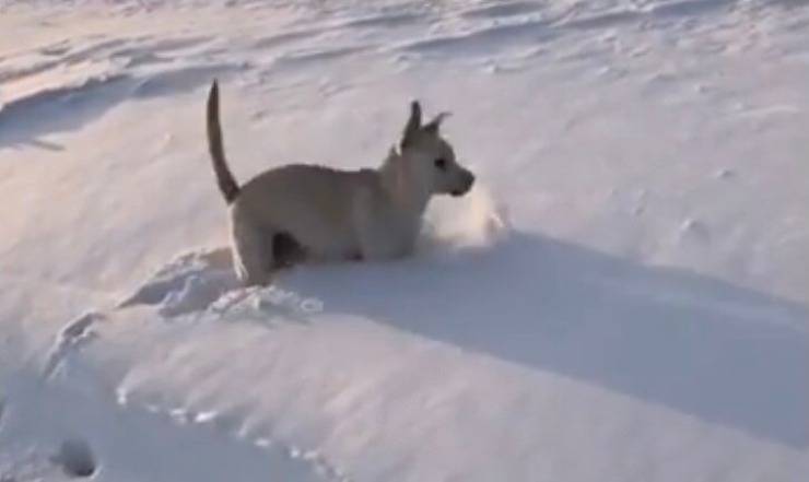 Dopo i maltrattamenti, cucciolo scopre la neve e torna felice