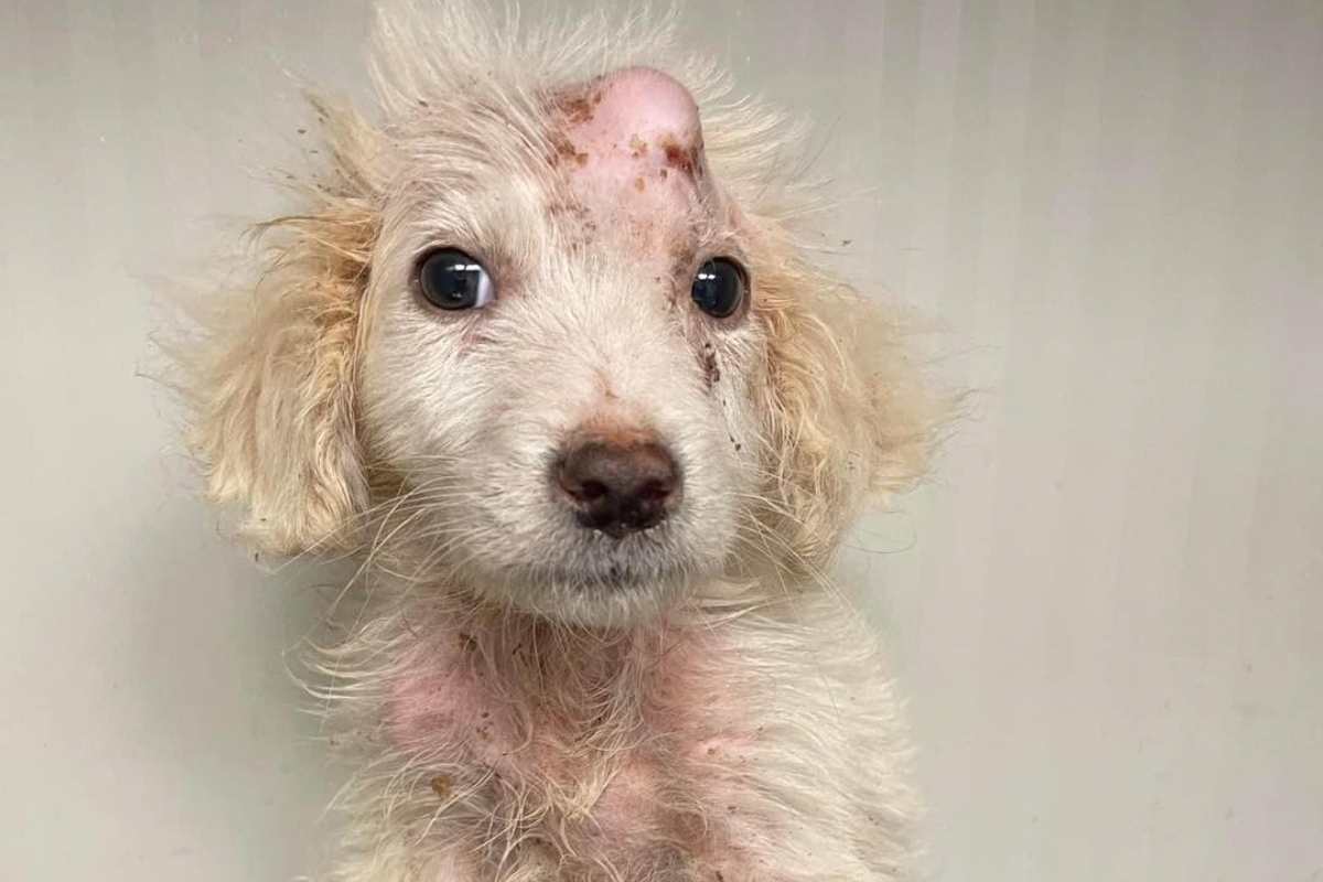 Un cucciolo di cane è stato lanciato fuori da un’auto in corsa, un grave trauma cranico lo ha portato a lottare per la sua vita: l’appello.