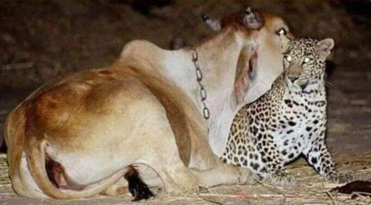 Leopardo si intrufola di notte per visitare la mucca che lo ha allattato dopo la morte di sua madre. La correlazione nell’infanzia e una necessità di sopravvivenza e i suoi effetti si estendono positivamente o negativamente per il resto della vita 💖 pic.twitter.com/ji4MU9vhj3