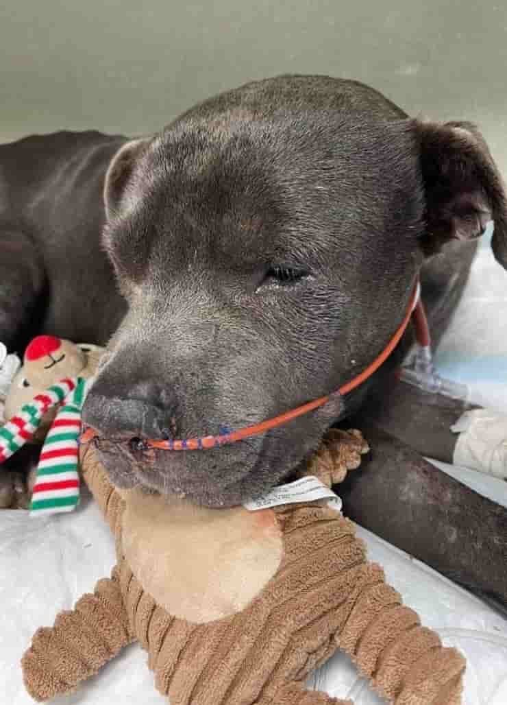 Le sue mamme adottive sono andate a trovarlo e lui felice è riuscito, nonostante la debolezza, a scodinzolare per far sapere quanto contento fosse di poterle vedere. La sua testolina cercava le sue umane preferite ogni volta che udiva le loro voci. Fatto positivo è che non ci sono danni neurologici e che Teddy dimostra tutta la sua forza nel non arrendersi.