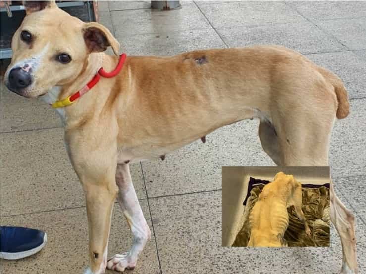 Secondo i veterinari la mancanza della coda sarebbe un indice di quanto abbia patito la fame il povero cagnolino