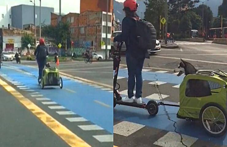 Ogni giorno che passa, le persone hanno sempre più un occhio di riguardo – per fortuna – quando si tratta di questioni legate alla salvaguardia dell’ambiente e alla riduzione dell’inquinamento atmosferico. La donna in questione, dal canto suo, ha scelto di muoversi per le strade di Bogotà, in Colombia, con un monopattino elettrico invece che in auto. La cosa che sorpreso i passanti ed il web, però, è che non ci ha pensato due volte a lasciare a casa il suo cucciolone e ha trovato il modo di portarlo con sé.
