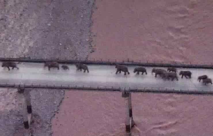 Con dei percorsi creati per loro gli elefanti asiatici sono stati guidati verso il fiume Yuanjiang nello Yunnan, per essere così finalmente indirizzati sulla strada da intraprendere per tornare a casa, la Riserva Naturale Nazionale di Xishuangbanna, Cina.