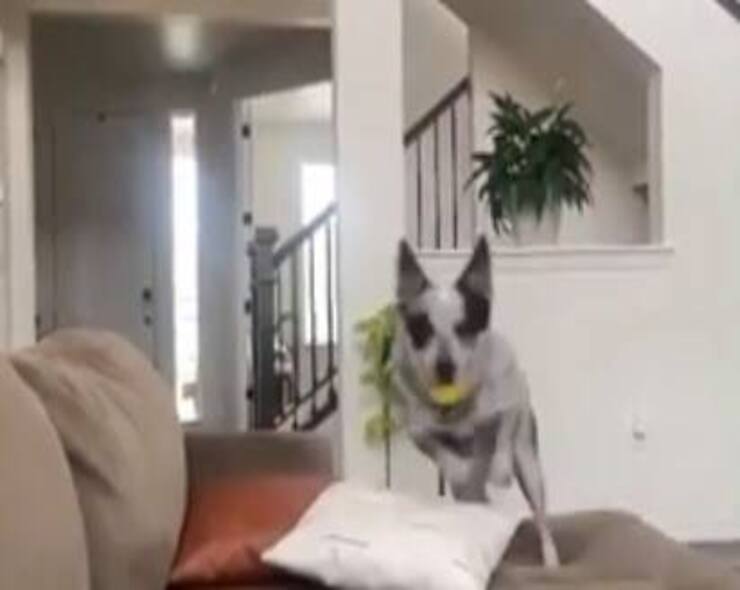 Il video mostra come la padrona lanci la pallina al piano superiore, Leyla già in posizione la recupera e attraverso le piccole sbarre della ringhiera la lancia al piano di sotto al suo amico Bear, che afferrandola al volo, la riporta alla sua umana preferita, per far ripartire il gioco da capo. Insomma, la famiglia al completo si diverte con il nuovo passatempo scoperto dai due cuccioli felici di vivere in questa bellissima casa.