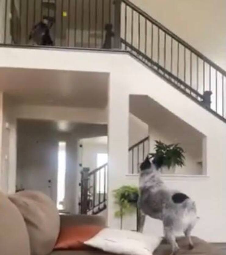 Ma un giorno, i cani hanno capito di voler cambiare le regole. Leyla ha deciso di rimanere al piano superiore e affacciandosi dalla ringhiera lanciare la palla al compagno di giochi dalla sua nuova postazione. Il gioco è talmente tanto piaciuto ai due che è diventato il loro nuovo preferito passatempo. Passando ore intere ripetendo quei movimenti, non si stancherebbero mai, e si interrompono solo quando i padroni intervengono perché è ora di mangiare.