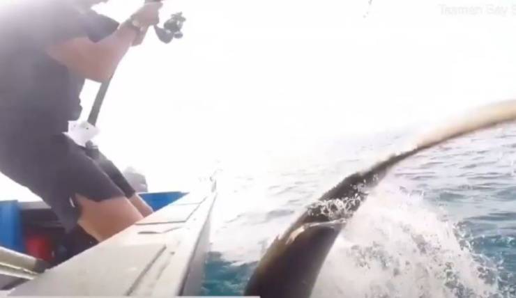 Come avevano in mente due amici in Nuova Zelanda quando hanno acceso la loro barchetta, si sono proiettati al largo e hanno cominciato la loro attività, con un’esca niente male. Peccato che al momento in cui hanno capito di essere al punto giusto, l’hanno lanciata con sotto qualcuno di inaspettato.