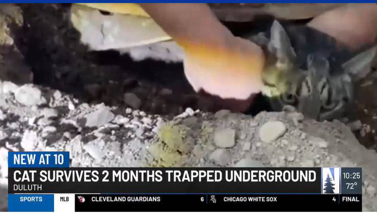Un gattino domestico è stato ritrovato due mesi dopo la scomparsa: il felino è riuscito a sopravvivere intrappolato sotto terra.
