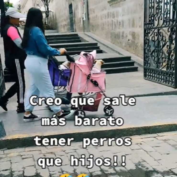 Il video condiviso da Nancy Esther Benitez sul suo account TikTok @nancyestherbenitez mostra due donne che spingono due colorati passeggini per bambini, camminando tranquillamente per le strade di Plaza de Armas ad Arequipa (una città del Perù, situata sulle rive del fiume Chili e capoluogo della provincia e della regione omonima). All’interno delle culle dotate di ruote non sono presenti però dei neonati umani ma due cagnolini di piccola taglia.