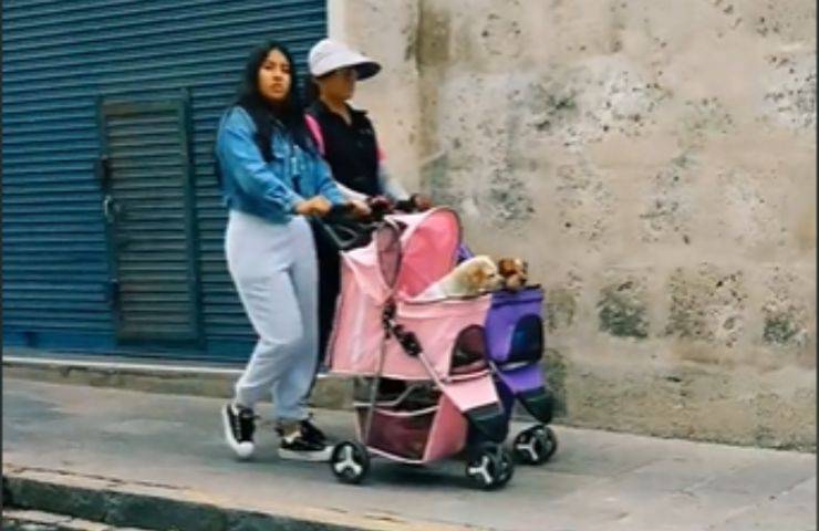 Cani portati a spasso nei passeggini: la didascalia al filmato ha suscitato reazioni contrastanti
