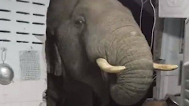 L’elefante sfonda il muro di una cucina. Il motivo del suo gesto è legato alla sua fame esagerata, la scena è diventata virale -VIDEO