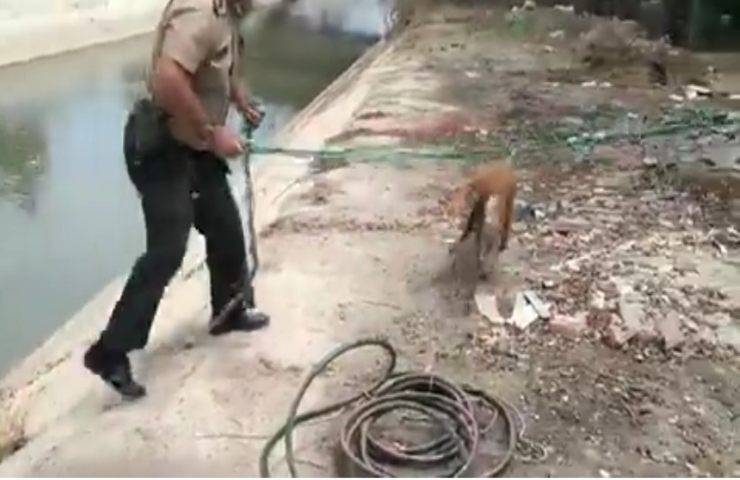 Si cala nel canale con una corsa per salvare il cane, il poliziotto eroe diventa una star del web