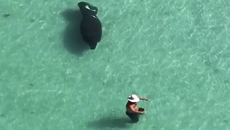 Macchia nera appare in acqua: alle sue spalle un lamantino