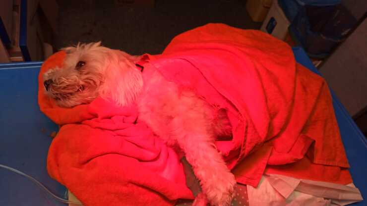 La famiglia ha deciso di operare il piccolo maltese al quale sono state messe delle viti, nonostante gli sforzi il cane è sopravvissuto ma rimasto paralizzato ed ora potrà camminare solo utilizzando un carrellino