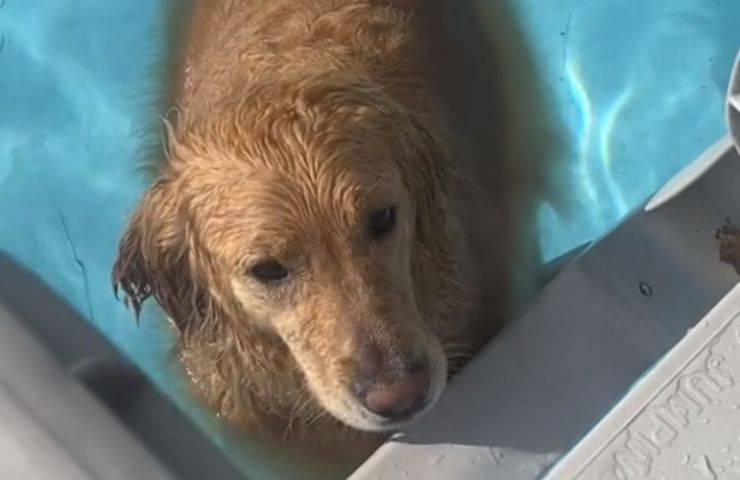 Giornate calde da trascorrere in piscina: il video del Golden Retriever che si rifiuta di uscire dall’acqua