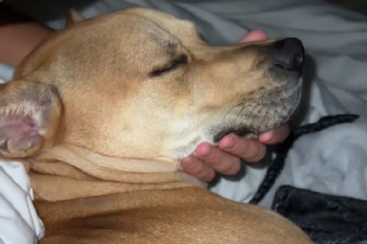 Il dolce incrocio di Pit Bull di nome Sonny, piace far finta di dormire la sera per evitare di uscire e fare l’ultima tappa “bagno”. Nella clip virale il cagnolino “dorme” profondamente nel lettone del suo papà. Ma lui sa che ha messo in scena quella sceneggiata per un motivo ben preciso e fa vedere fino a che punto si spinge il suo Sonny. Gli prende in mano la testa, gli tocca la bocca, ma il cane non batte ciglio e rimane con gli occhi chiusi. Quando gli mette giù la testa, Sonny apre gli occhi per un secondo regalandogli un’occhiataccia.