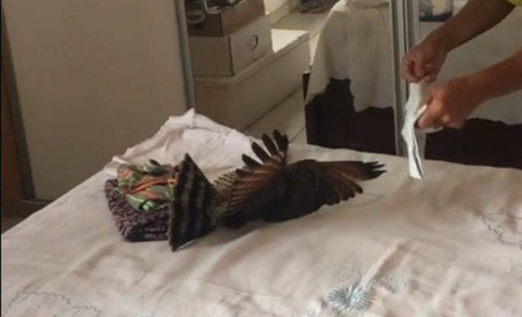 All’interno delle proprie abitazioni si è soliti trovare lucertoline, ragni e insetti di piccola taglia di altro genere. Tuttavia alle volte può capitare che in casa facciano capolino animali strani, ed è quello che è successo a Paloma Viana, una ragazza di 22 anni, di Rio de Janeiro. La ragazza infatti si è trovata di fronte ad un uccello insolito all’interno della propria casa: un falco! La madre di Paloma ha trovato coraggio e ha cercato di prendere l’animale con tutta la cura possibile con un panno per proteggersi dal becco provando anche a non spaventarlo.