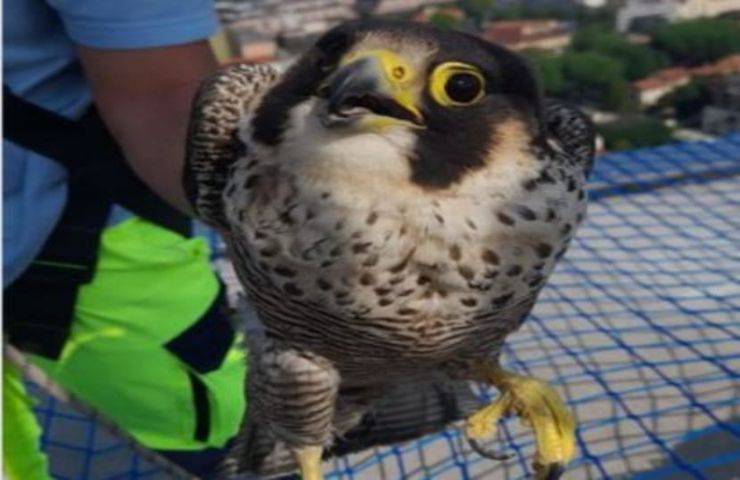 Il falco pellegrino Giulia incastrata nella rete di protezione salvata dall’ENPA