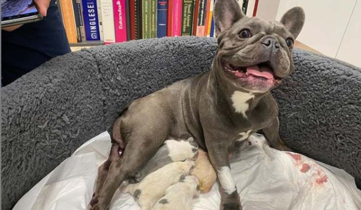“Mamma felice“. Comincia così la didascalia che accompagna la foto postata su Instagram dalla campionessa Federica Pellegrini. L’immagine mostra Vanessa, la sua cagnolina, piena di gioia accanto con i suoi 4 adorabili cuccioli, venuti alla luce all’una di notte. All’ora citata, Federica ha dovuto contattare il veterinario Cesare perché la pelosetta è andata in travaglio. La quattro zampe era un pò in difficoltà perché la sua padrona aveva notato che non aveva abbastanza forza per spingere, subito dopo aver rotto le acque. Ed è proprio in questa circostanza che avviene una sorta di piccolo miracolo. La pelosetta partorisce naturalmente a solo un minuto dal cesareo d’urgenza, e dopo soli 40 minuti, nascono Gas, Cesare, Gina e Bianca.