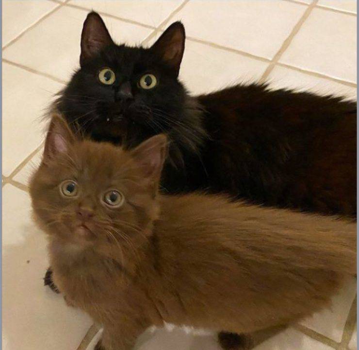 Come si legge sulla pagina Facebook dell’organizzazione statunitense (@Mini Cat Town), una dolcissima gatta dal manto nero lucente è arrivata al rifugio per gatti Mini Cat Town insieme ai suoi quattro adorabili cuccioli. Appena li hanno visti, i volontari si sono accorti della particolarità dei piccoli micetti: questi infatti avevano il manto di un colore tra il cioccolato e la cannella. Laura Maylon, direttrice del rifugio ha descritto i micetti su Facebook: «Gli occhi sono chiari. Il manto è color cioccolato e cannella. Nasi e punta dei piedi sembrano essere di un colore marrone rosato, il che mi porterebbe a credere provvisoriamente che non si scuriranno fino a diventare neri come la mamma, ma potrebbero rimanere vicini a questo colore. Se è vero, saranno estremamente unici!». Trovare un gatto dal manto marrone è infatti estremamente raro: questo colore è il risultato di una mutazione che si verifica nel gene del nero. Proprio per questo i cuccioli hanno sorpreso tutti. La gatta è stata ribattezzata con il nome di “Mars“. Come raccontano i volontari del rifugio, Mars è estremamente affettuosa con i suoi cuccioli. All’inizio diffidente con gli umani, la gattina si è in poco tempo abituata e ha mostrato di essere dolcissima con tutti. I gattini adesso stano crescendo e hanno mantenuto la loro meravigliosa quanto rara colorazione.