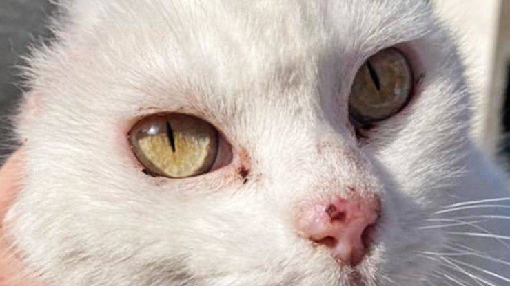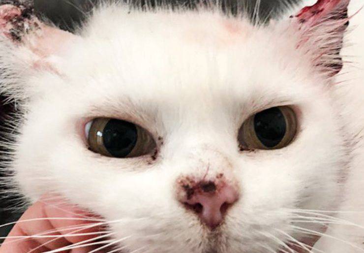Pochi mesi fa, questa splendida gattina dal pelo bianco, si era ritrovata a combattere un brutto male: un tumore alle orecchie. Quest’ultimi venivano, piano piano, consumate dal male stesso. L’unica cosa che si poteva portare a termine, per estirpare il male, era rimuovere i due organi.