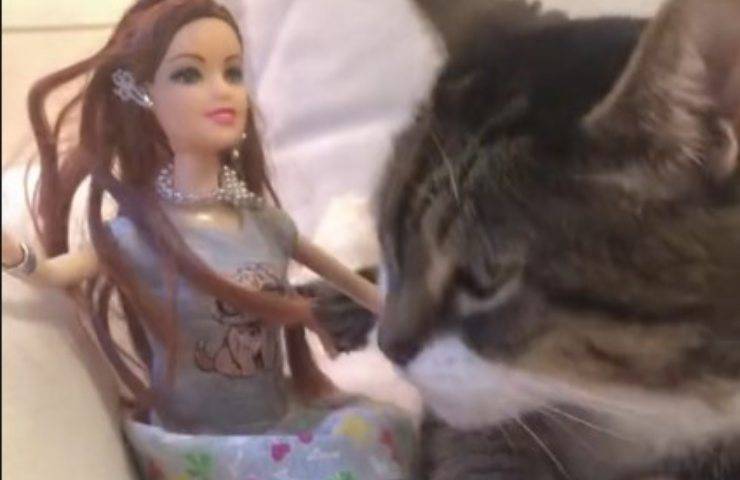 Anche i gatti amano le barbie: questo micio virale ne è la prova