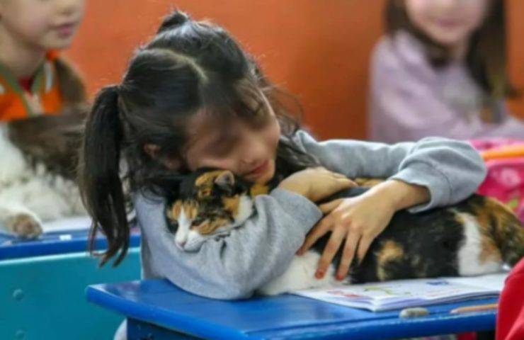 Imparare divertendosi: i gatti randagi adottati dalla scuola aiutano i bambini e fanno parte della loro classe