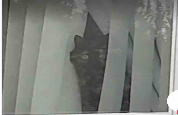 Una gattina resta sconvolta dalla finestra quando vede la sua padrona fare qualcosa davanti casa