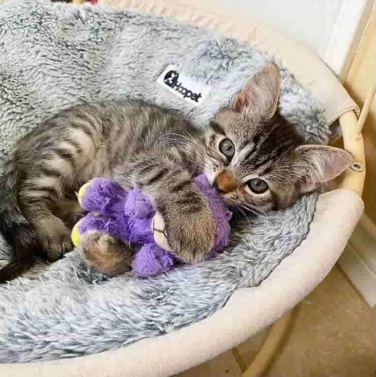 Sapere che questi regali, possano essere un sopporto nei loro momenti difficili ci rende orgogliosi. Ed è proprio un piccolo e vecchio peluche di colore viola che è stato l’ancora di salvezza di una gattina per troppo tempo stata in fin di vita.