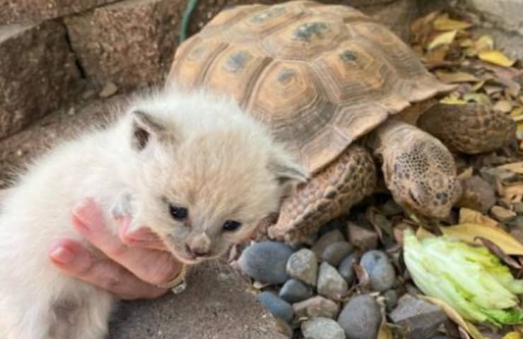 Un’emozionante scoperta è stata condivisa su Facebook, da @Fosterkittensvegas, mostrando la rivelazione rappresentata da un trio di gattini meravigliosi, dal manto bianco, nati all’interno della tana di una tartaruga e vissuti lì fino al loro recente ritrovamento. Nonostante i mici siano ora stati accolti in una nuova sistemazione – data la stretta vicinanza di quest’ultima con il precedente rifugio della loro amica testuggine – il feeling tra le due specie diverse sarebbe più forte di prima.